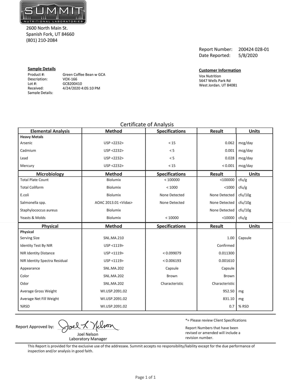 | 2. Uses high dosages of green coffee bean from 50% green coffee bean antioxidant. | 2. Do not source the green coffee bean from the antioxidant source. |
