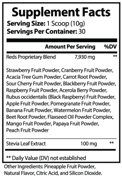 Red Superfood is a super fruit blend of strawberries, cranberries, raspberries, pomegranate, and other potent fruits to form a nutritional powerhouse. This superfood drink is packed with antioxidants to help clean up unstable free radicals that damage cells. All ingredients are high in polyphenols, carotenes, and phytonutrient antioxidants. Delicious and nutritious, great for any time even for after-workout recovery.Additional info